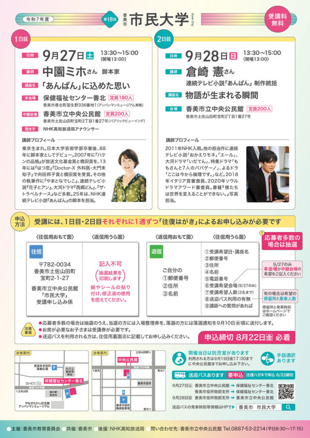 毎年さまざまなゲストを迎え開催されている高知県香美市「市民大学」。